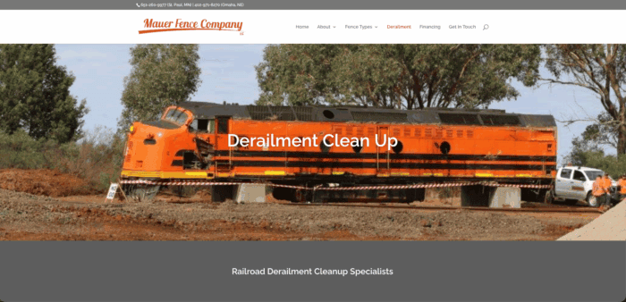 Mauer Company markets itself as a specialist in detailed railroad derailment cleanup for Class I and short line railroads throughout the continental U.S. Their approach emphasizes thorough removal of derailment debris such as ballast, ties, metal spikes, and brush, and restoring the site to its original condition. They use turf-friendly equipment to reduce soil disturbance when working near agricultural lands and prioritize clear communication with landowners.